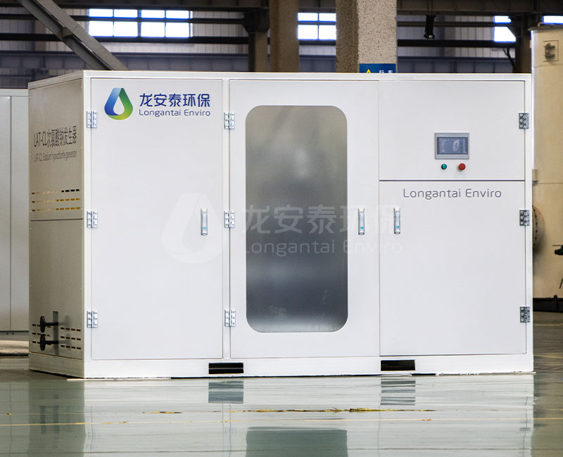 是一種新型的用于在線生產(chǎn)次氯酸鈉溶液的設備。適用于各種需要采用次氯酸鈉進行消毒的場合。其工作原理是:氯化鈉溶液在一定的槽電壓作用下,在電解槽
